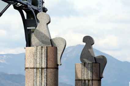 吉野川市鴨島町と阿波市吉野町を結ぶこの橋のたもとに、世界的に有名な香川県出身の彫刻家イサム・ノグチ氏の石像が両端に2体づつ飾られています♪