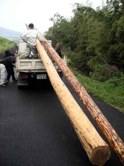 木材は道路脇に置かれていたので、車に積んで移動させるだけなのですが、とにかく人手が必要です。