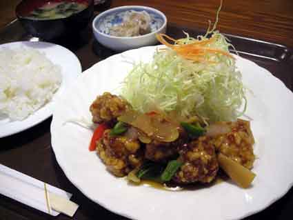 今日の「日替りランチ」は「チキン竜田の甘辛煮」と「シュウマイ」でした(^ ^ ;