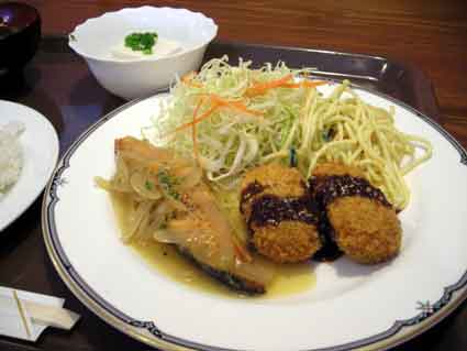 「日替りランチ」は「鮭のバターソテー」に「キンピラコロッケ」、そして「冷ややっこ」でした!!