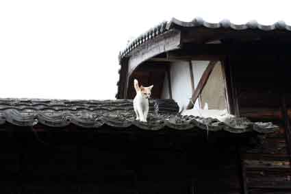 昨日の朝、出勤しようとしたら・・・隣の家の屋根に白茶が・・・。