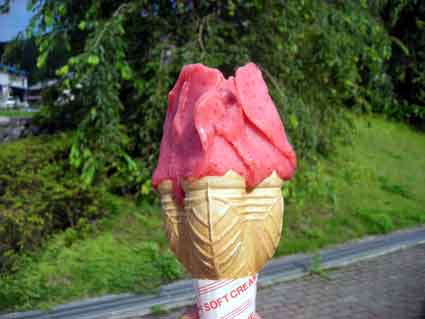 さすがに納品を終えたあと、道の駅「温泉の里かみやま」でアイスクリームを買ってしまいました(爆笑)!!