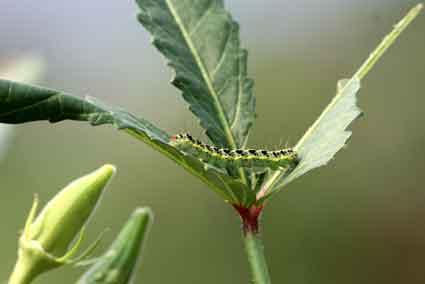 オクラの花を撮っていて「毛虫」を発見しました(^_^)~
