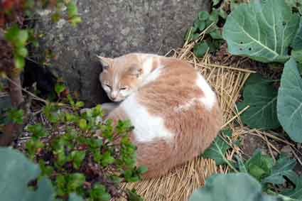 昨日は庭の隣の畑の植込みの下に置かれた稲わらの上で、気持ちよさそうに寝ていました(^_^)~