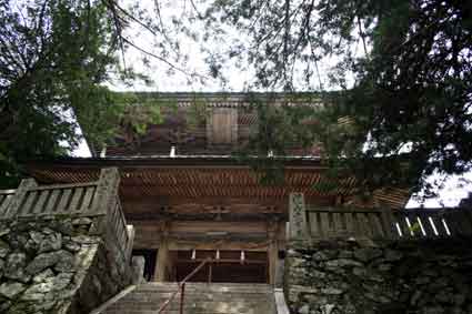 登山道を登って行くと、最後は階段となりこの「山門」があらわれます。