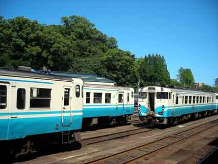操車場には、化石のような(爆笑)古い気動車がたくさん停車しています(^_^)~
