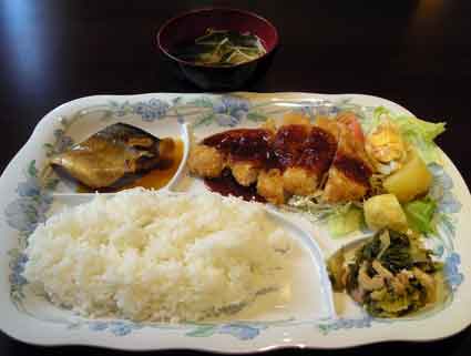 日替りランチは「トンカツ」に「サバの煮付け」、「白菜の煮びたし」でした!!