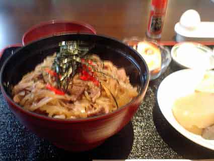 「牛丼」には生卵も付いてきましたが・・・パス・・・へへ