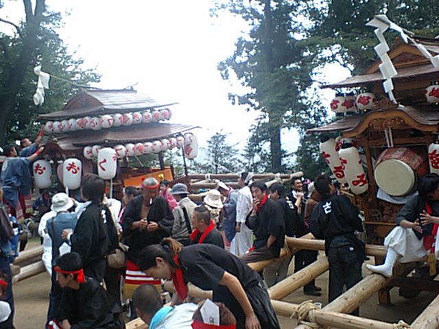 石段を登り、屋台は川田八幡神社の境内に並べられます♪