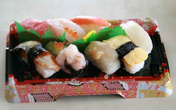 今日の昼食は、ここで買った「にぎり寿司」です(*^。^*)♪