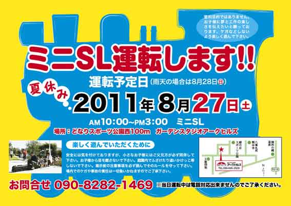 今日、徳島県阿波市土成町のガーデンスタジオ「アークヒルズ」で、恒例の「ミニSL」が運転されます♪