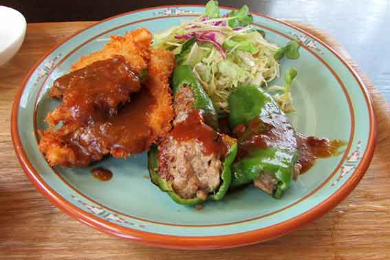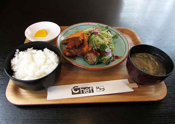 「日替わりランチ」は、「チキンカツのカレーソース」と「ピーマンの肉詰め」でした!!