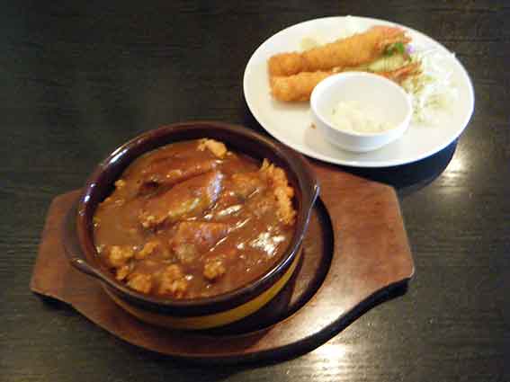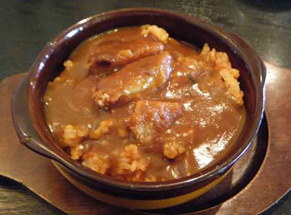 ケチャップライスの上にカツがのり、ドミグラスソースがかかっています♪