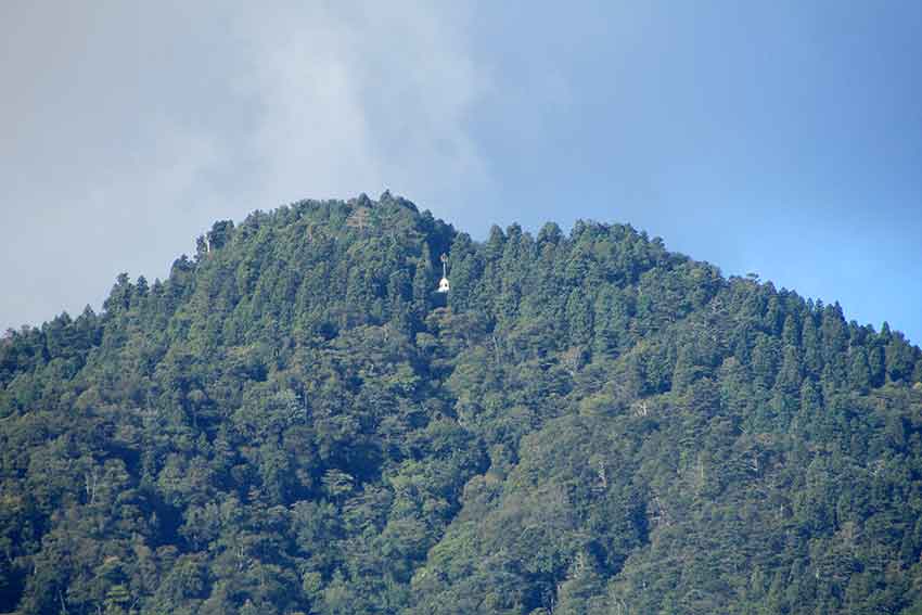 我が家の庭から、高越山頂の高越寺境内にある「錫杖塔」が見えていました!!