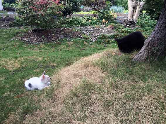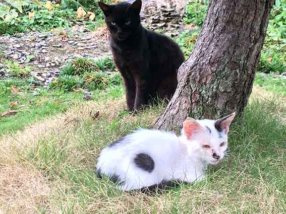 今朝のニャンコは、ふじこさんとこのシロちゃんと、チビクロです!!