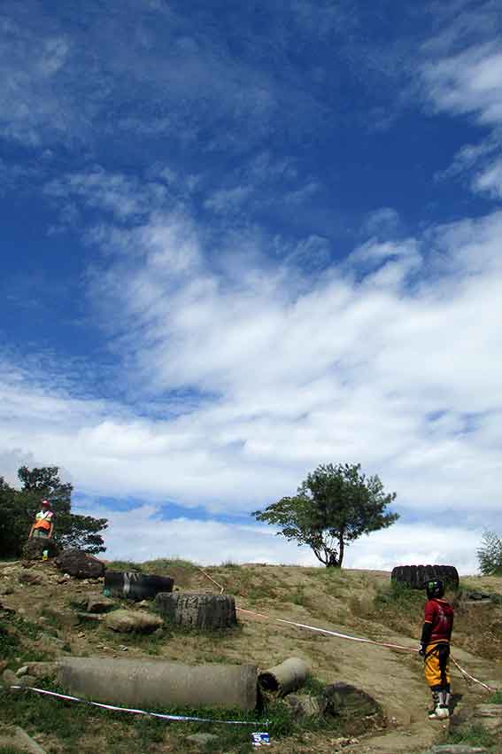 写真のように、普通はオートバイで走らないような(笑)障害物が容易されています!!