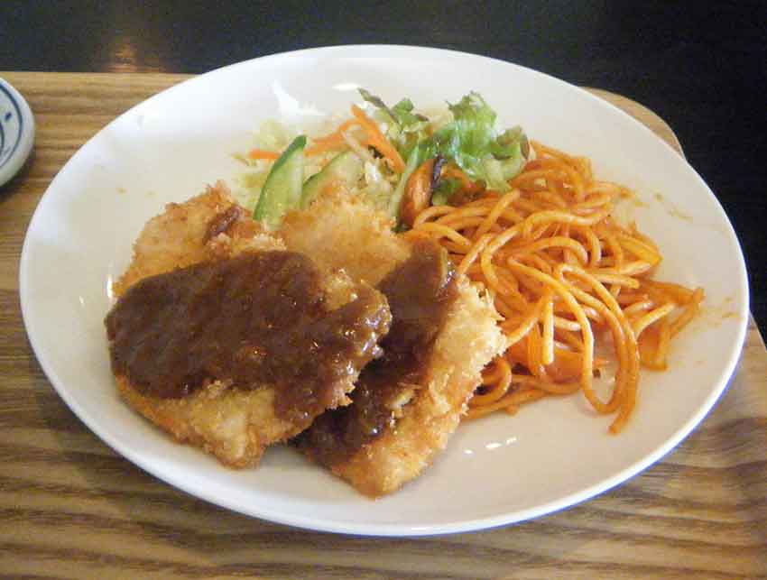 「日替わりランチ」は、「チキンカツ」のカレーソースと、「イタリアンスバゲティ」でした!!