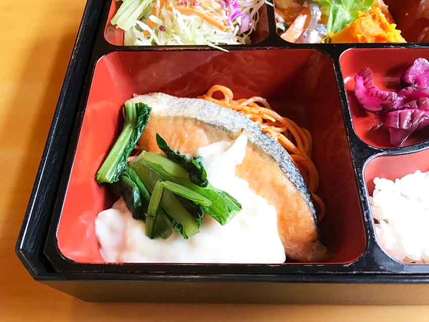 「日替わりランチ」は、「鮭のムニエル」と「豆腐ステーキ」でした♪