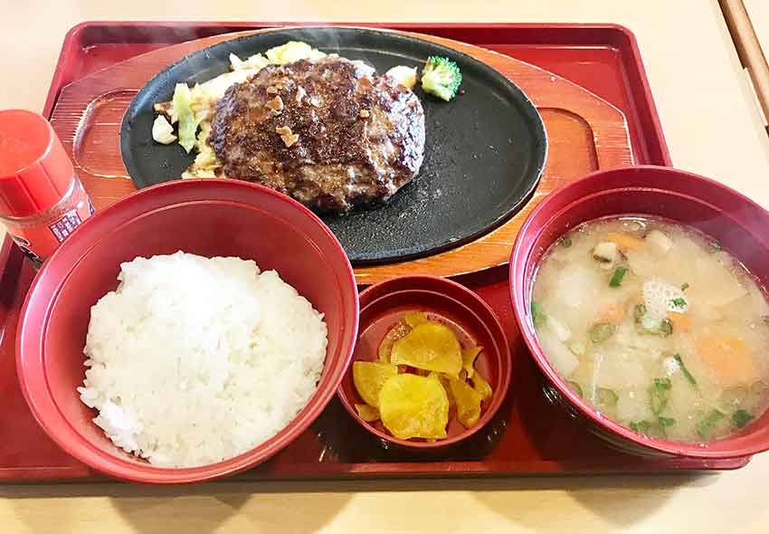 「しんけんハンバーグ」の限定セットメニュー「豚汁和食ドリンクセット」ですヽ(^o^)丿