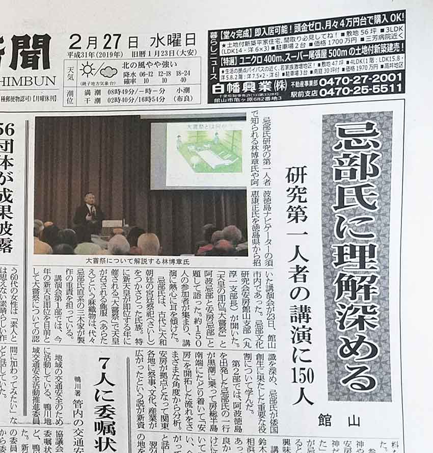 千葉県館山市での講演会の事が、地元の「房日新聞」の1面トップに紹介されていましたヽ(^o^)丿