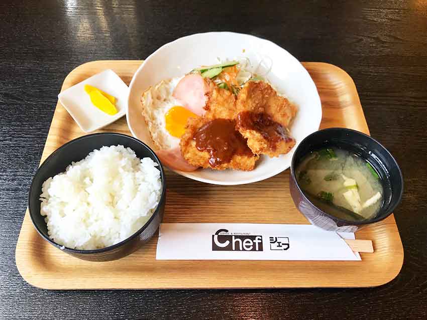 「日替わりランチ」は「チキンカツ」と「ハムエッグ」でした♪