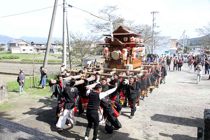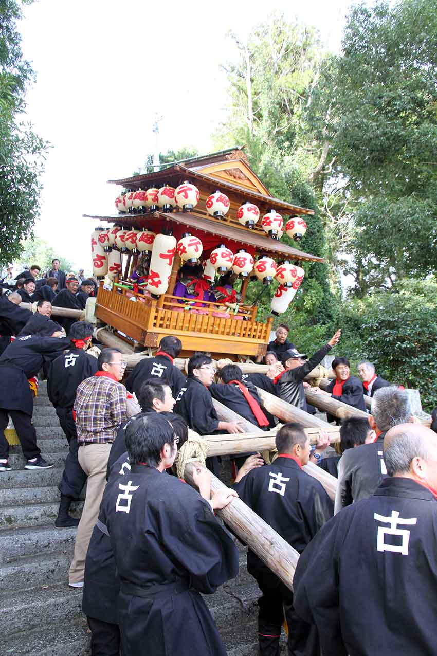 長い参道を担ぎ、石段を境内へと担ぎ上げます♪