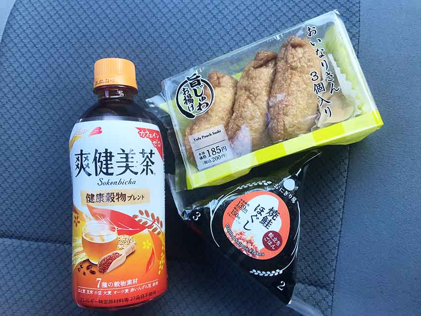 取材が午後2時までかかったため、昼食はローソンで買った「おにぎり」と「いなり」となりました♪