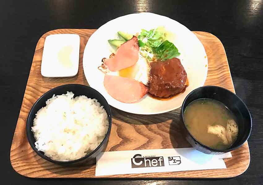 「煮込みハンバーグ」と「ハムエッグ」でした!!