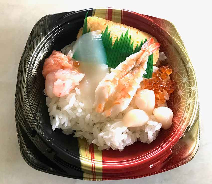 今日の昼食はマルナカで買った「7種のカラフル海鮮丼」です♪