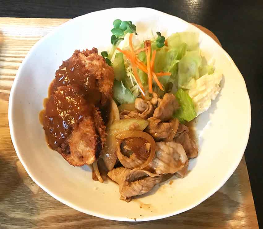 「日替わりランチ」は「豚生姜焼き」と「レンコンの挟み揚げ」でした!!