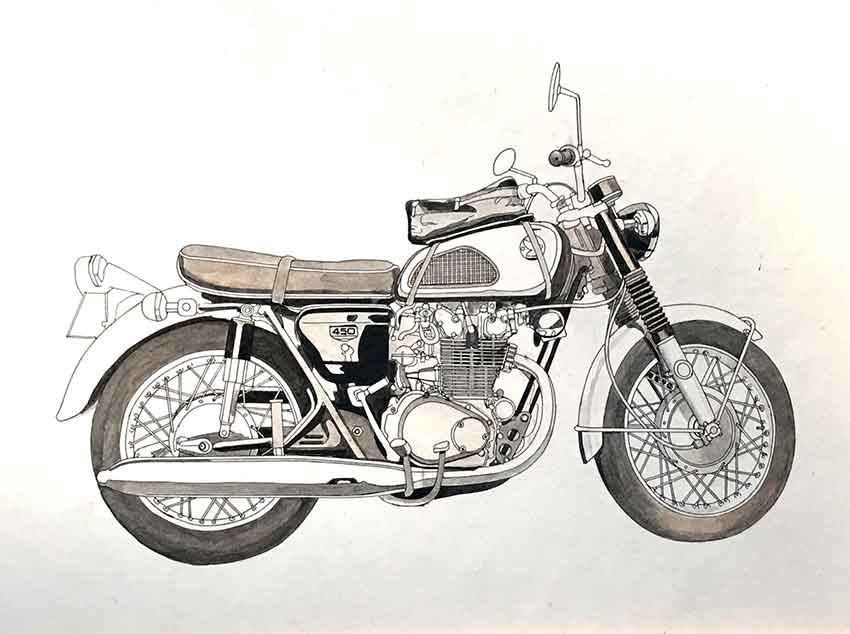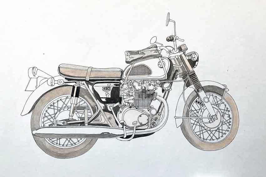 午前4時50分起床、オートバイイラストの着色をします!!