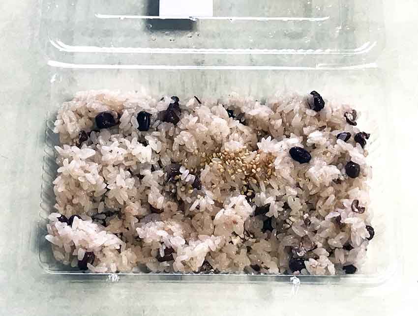 今日の昼食はマルナカで買った「赤飯」です♪