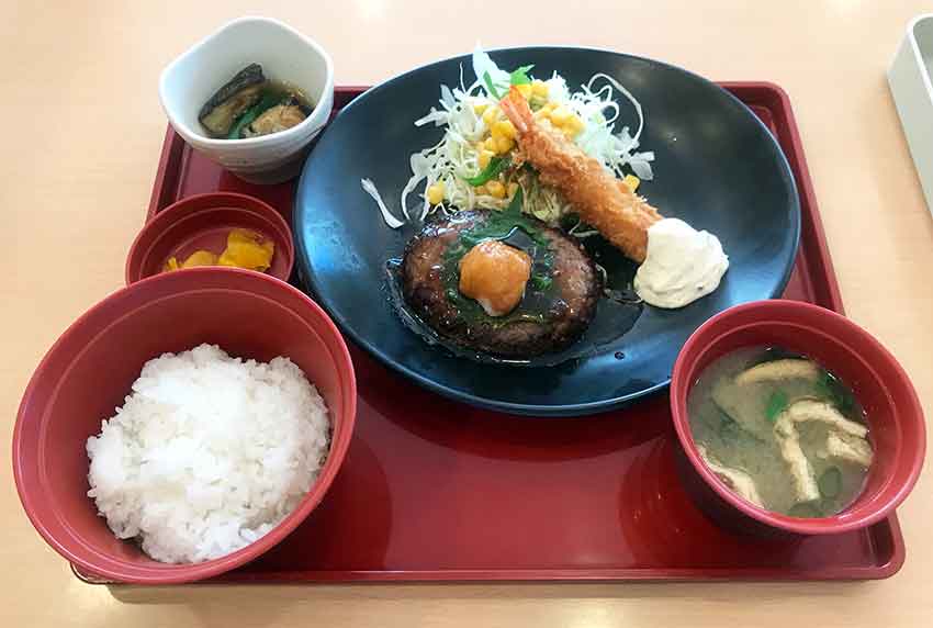 金曜日の「日替り昼膳」は「おろしハンバーグ&エビフライ膳」でした