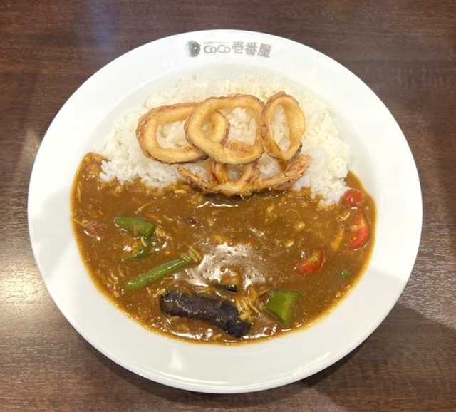 「夏野菜カレー」に「イカリングフライ」をトッピングしました♪