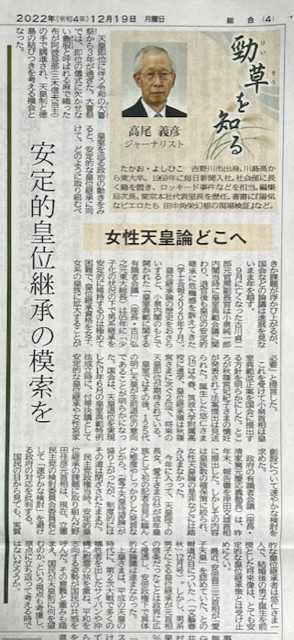 今朝の徳島新聞、母校「川島高校」の先輩、高尾義彦さんの「勁草を知る」が掲載されていました。