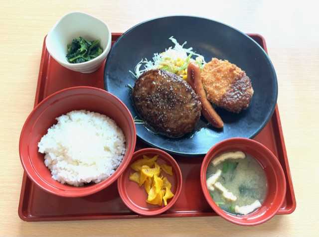 金曜日の「日替り昼膳」は「ハンバーグ」と「ソーセージ」「コロッケ」でした!