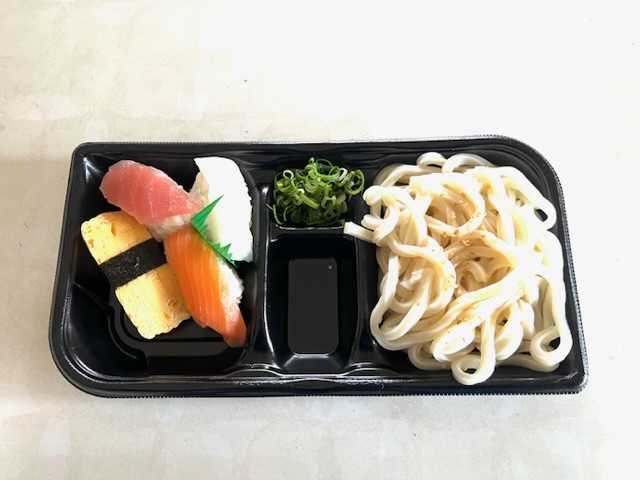 昼食はマルナカ脇町店で買った「うどんセット」です。