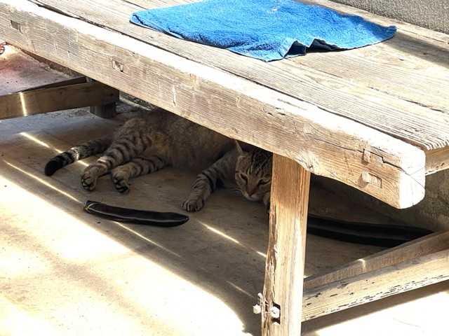 外猫のニャンコ達は、涼しい場所を探して大変です。