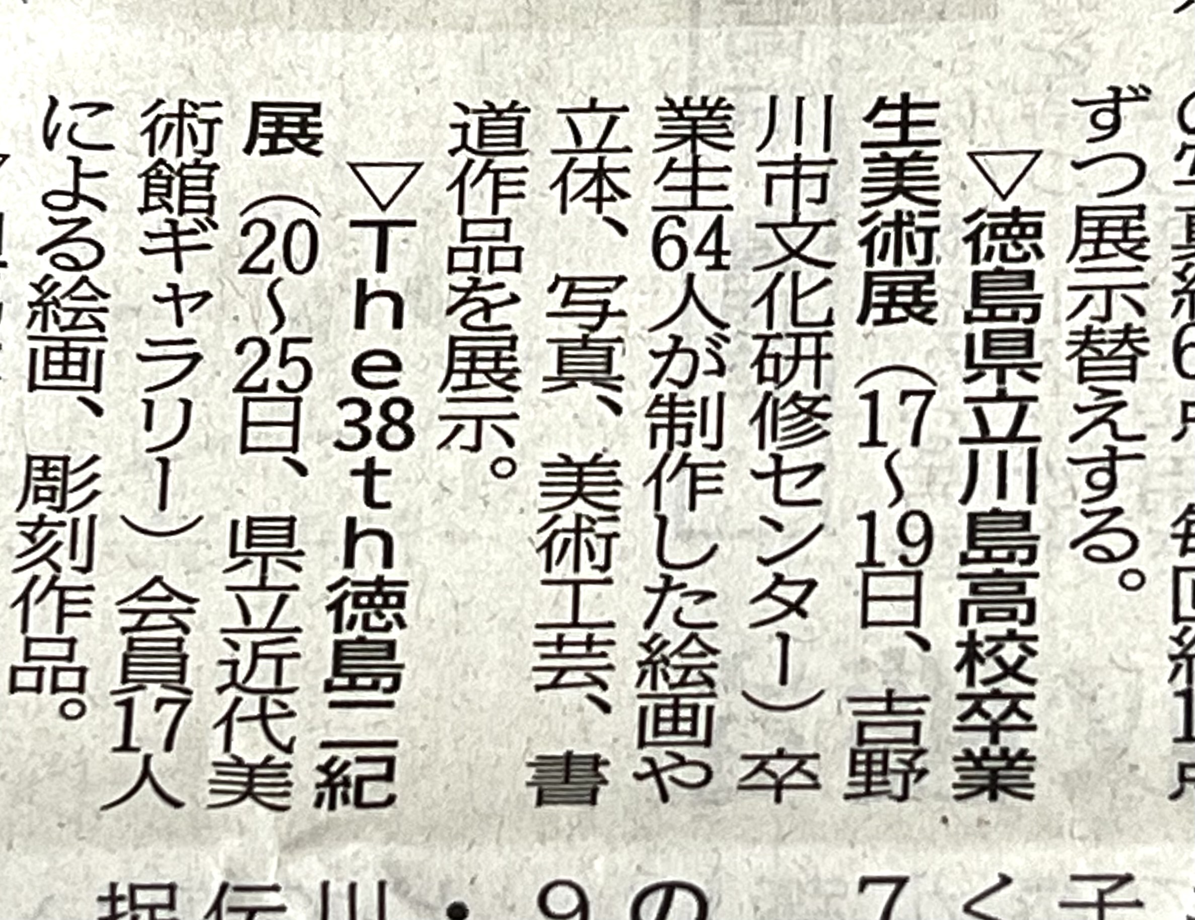 8月17日(土)〜19日(月)まで三日間、吉野川市鴨島町の「吉野川市文化研修センター」で開催されます。