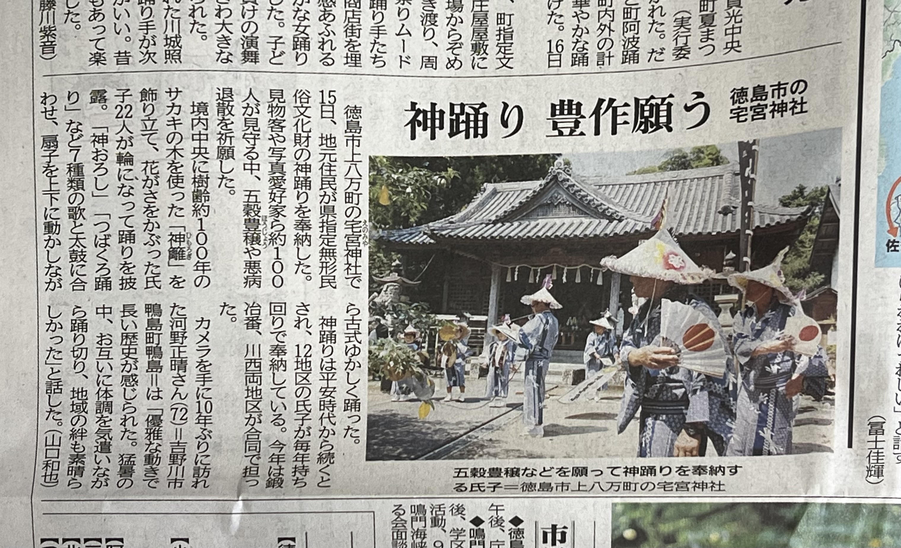 昨日の宅宮神社の「神踊り」の記事もありました。