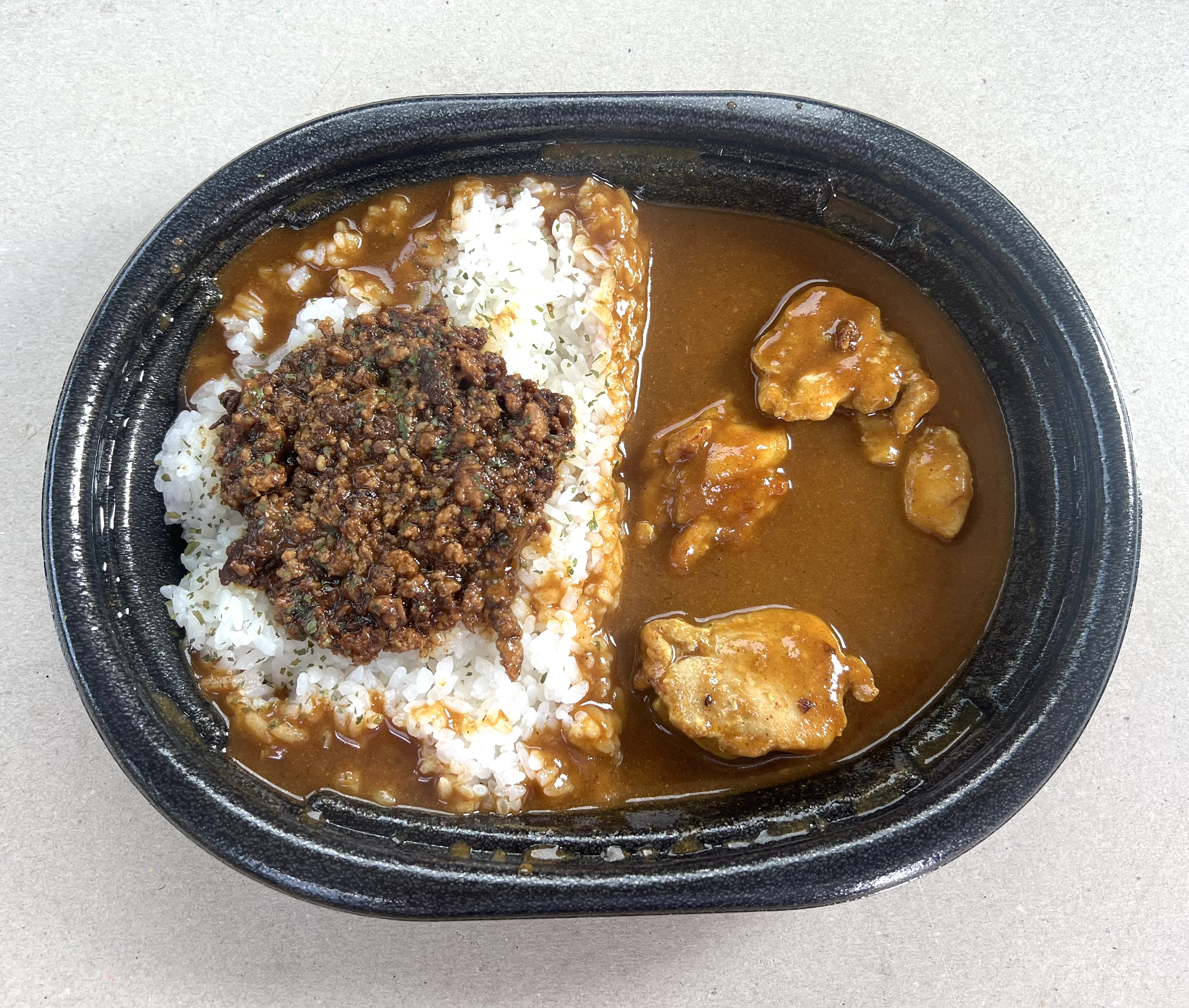 昼食はローソンで買った「チキチキ&キーマカレー」です。