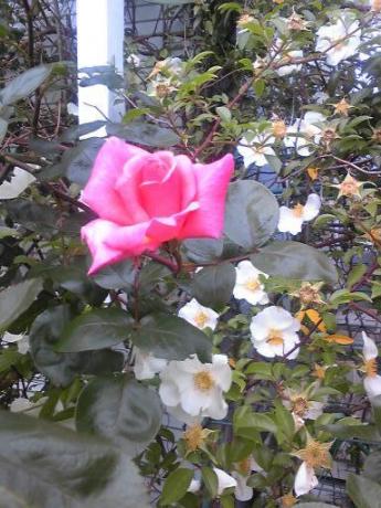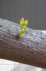 意外にも 晴れてしまったので昨日 遅がけに無理して洗濯物を干したのを後悔しつつ、せっかくなので 庭に出てみた。庭仕事でもするか と思ったけど草刈りは・・・ありがたいことに、雑草は目立たなくなっていた。(寒くなったからねぇ)プラプラと 地面に落ちてる古枝を拾いながら (柴刈りですね)・・・植栽物の観察!(それが仕事なのね)いやいや、いいことありましたよ。台風の時に倒れたミモザアカシアにちっこい芽が出ていました!偉いもんだね。強いね。あきらめてはいなかったけど、期待しないようにしてたから・・・うれしい!ありがとう! 在りし日の雄姿 (・・・生きてますって)二階の出窓から手が届くほど、だったのにね。 こんな姿が見られる日が また くるといいなぁ