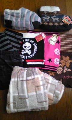 元旦早々、ソックスbox408さんで購入した福袋の内容。レディースプレミアム福袋「レディース靴下が15足と他のレディース商品が7点以上入った新春福袋」と 謳っており、送料無料で1980円だったので「ちょうど靴下も交換時期だから買っておこうか・・・」くらいの気分でポチリ。 たかをくくってました、すんません。 27×36×24(センチ)のしっかりしたダンボールで届けられた折には「あり?こんなの頼んだっけ?」なんて一瞬考えたほど。なんでしょうか、この量とかさは! ルームシューズ×2、レギンス×2、あったかパンツ、ハラマキ、ハラパン、ふわふわのルームパンツ、アームカバー×2、靴下いろいろ15足で、計25品 (一品あたり80円以下)(色柄の好みはともかく) すぐに使えるものが多くて助かり・・・でも収納場所のキャパシティを大幅に超えるためとりあえず ダンボール箱から出し入れしております。姪っ子(中学生)が遊びに来たら 少し持っていってもらおう・・・。