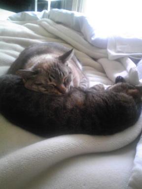 二日酔い・・・ 昨晩 友人I夫妻との食事会で食べ&呑み過ぎた・・・6時くらいから9時くらいで、時間的には長くなかったのにアルコールの選択を誤った・・・だって寒かったんですもの【とりあえず、ビール!】の鉄則(たんご規定)を破り、どしょっぱなから 熱燗大徳利、いってしまいました。 ちなみにこの会は I夫婦がおそろしく偏食が激しいのでI夫と I妻が食べられるものをそれぞれ注文し、私と家人がその分け前に預かる方式でもう十年以上続いている。乾杯のお飲み物も この日はてんでバラバラだった。I夫:焼酎ロック I妻:ドリンクバーのココア家人:生ビール大ジョッキわたし:日本酒熱燗なんでか知らないけど、最初に熱燗頼んじゃうと他の飲み物に移行する気がなくなっちゃう。結局最後までこれで通して大徳利4本くらい空けたの・・・かな?ツマミは焼肉 (そもそも焼肉を食べに行ったんだが)と チャンジャ。好きなように食べ・呑み・会話して上機嫌で帰宅し、その後の記憶が・・・とんだ 今朝 6時にポッカリと目を覚まし、やたら喉がかわいたんで お茶を飲もうとキッチンに立つとホットワイン用に買っておいた安ワインのボトルが・・・半分ほどなくなった状態で置いてある。飲んだのか? 飲んだのね?思い出せないんだけど。どうやらポテトチップスも一袋食べたらしい。(空袋発見) そういえば、ちゃんと自室の布団の中で目覚めたけどいつ寝た、とか全く覚えてない・・・(はっ!化粧は?)・・・落としてある(はっ!!指輪してない!?)・・・ジュエリーケースに戻ってたちゃんとパジャマに着替えて 脱いだ服も畳んで置いてあった(なぜかリビングに)猫たちが騒がないところから推察するに、どうやら 猫の世話(ごはん・水・はばかり)もしたらしい。久しぶりに相当酔っ払ったんだと思うのに、なんてエライんだ、ワタシ!!(覚えてないけど) ただ、まあこれは仕方がないと思うんだけど(酔ってるときは危険だからね)お風呂に入らなかったので(多分)寝床に焼肉(のタレ?)の香りが充満してた・・・。この匂いでごはんが食べられそうなくらい。(食べないけど。)まだ頭がウ~ラウラ・ク~ラクラ状態で胃がドンヨリだけど、窓を開けて布団干さなきゃーだわ・・・。