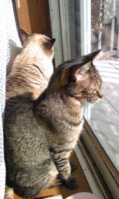 今日はぽかぽか陽気 お外に出たい・・・ 「えっ そっちが開くの!?」 わ~~っ!押すな押すな!ぎゅうぎゅう 先に並んでたのに なんか、出そびれた・・・