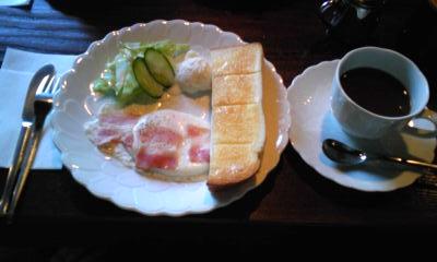 朝食は久しぶりに喫茶店のモーニング ( 愛知ですから♪ )年配のご夫婦が営んでいる小さいお店で愛想はそれほどないけど、感じが良いので 独身時代からの御用達店。蔵を改造したような白壁の小さい建物で 店内の空気感がまたよい。この日は他のお客さんがいなくて(朝一番で入店!)一段と静かだった。コーヒーだけ注文しても、トーストが一枚付いてくるけど ( 愛知ですから♪ ) ほんのちょっとだけお金を足すと・・・うひょ!ハッピ~・モーニングに♪ 願わくばコーヒーのオカワリと あと30分早い開店を・・・なにしろ我が家は早起きなので開店が待ち切れにゃー、なの