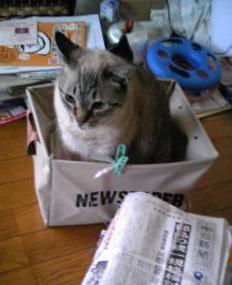 古新聞がストッカーにいっぱいになってきたので整理をしているとちょっと目を離したすきに・・・入ってる「どいて」って言われるのやだから、目を合わさないのね シブシブ移動・・・(いや、そこもちょっと・・・)おおっ浮いてる!?かぶさってました。結局ここも どかされて、私がこの新聞の束を物置に置いて戻ったら 座布団取られてた・・・。でも私の座るスペースは空けといてくれるんだよね (ちと足りないが)いいこ、いいこ 猫も入れます Cupmen(カップメン) ↑ 無性にこれが欲しい今日この頃 無くても別にかまわないけど、あったらちょっと楽しいかもね。