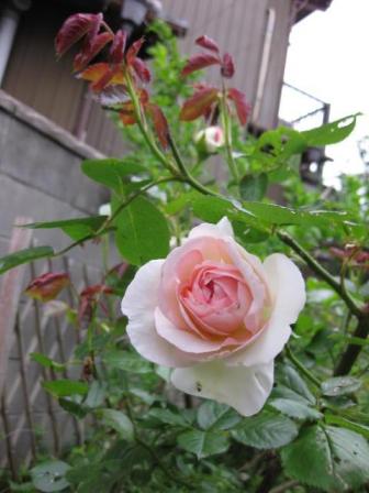 バレリーナ (CL) 咲き出した頃夕方で少し閉じかけだけど、そこがまた初々しいな~ 雨の後群舞で疲れ気味? でも あのひどい雨風の中、よく堪えたなあ。これでも我が家においてはよく咲いてるほうなんです。薬は極力使わない庭なので、気づくと丸坊主になってたりしてなかなか株が育たないけど今シーズンは 群がるアブラムシを百均の霧吹き(ジェット)で吹き飛ばす!・・・という画期的(←?)な方法に はまったおかげで今までになく良好な状態で花の季節を迎えられました。(天気以外は!) それにしても・・・雨が上がった途端、植えた覚えのない植物(←雑草とも言う)がニョキニョキ!草をかき分けながら写真を撮るありさまです。これも 蚊が出てくる前になんとかせねば・・・