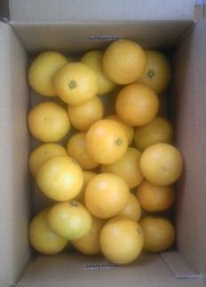 ちょいとハマっているもの。ニューサマー・日向夏・小夏 (呼ばれ方 いろいろ)伊藤さんちの羽夢さんのところで見せていただいて矢も盾もたまらず楽天で検索→速攻注文! 久しぶりに食べたら、おいしかったのよね・・・ この辺りのスーパーではトンとお目にかかれないので再び安いお取り寄せを物色していたら、実家に行く途中の露店で バケツ売りしてるの発見!(ラッキー) あり?ずいぶんサイズがちがうなぁ?後で買ったほう(右)は夏みかんくらいあって完熟な感じ。こっちのほうがやっぱり甘かった。(でも蜂蜜はかける)白い綿ごと食べるのでオナカが膨れるけど美味しくって手が止まらず、きょうは大きいほうを ひとりで二個食べました。 はぁ~もう晩ご飯、いらないやぁ~ (でも作らなきゃいけないのよね・・・(ーー;))そだ!これ刺身にして醤油かけて出したろかしら(そういう食べ方があるらしいです。本当ですってば)