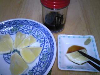 昨日の記事の最後にチョロっと書いた、【日向夏の刺身】ホントにやってみましたよ。ご丁寧にワサビ(チューブだけど)も添えて・・・・・・うん、美味しいじゃ あーりませんか!!ワタのところに醤油をつけるのが好きだなあ~。また一個分、ワサビ醤油で完食してしまいました。でもこの食べ方って・・・おかずやおつまみ、ではないし・・・(ごはんにもビールにも断然合わない!・・・と思う)強いて言えば やっぱりデザート?(ヘンなの) なんだか妙に気に入ったので、またこうして食べよう♪♪・・・と思うほどに、違和感なくおいしゅうございました。